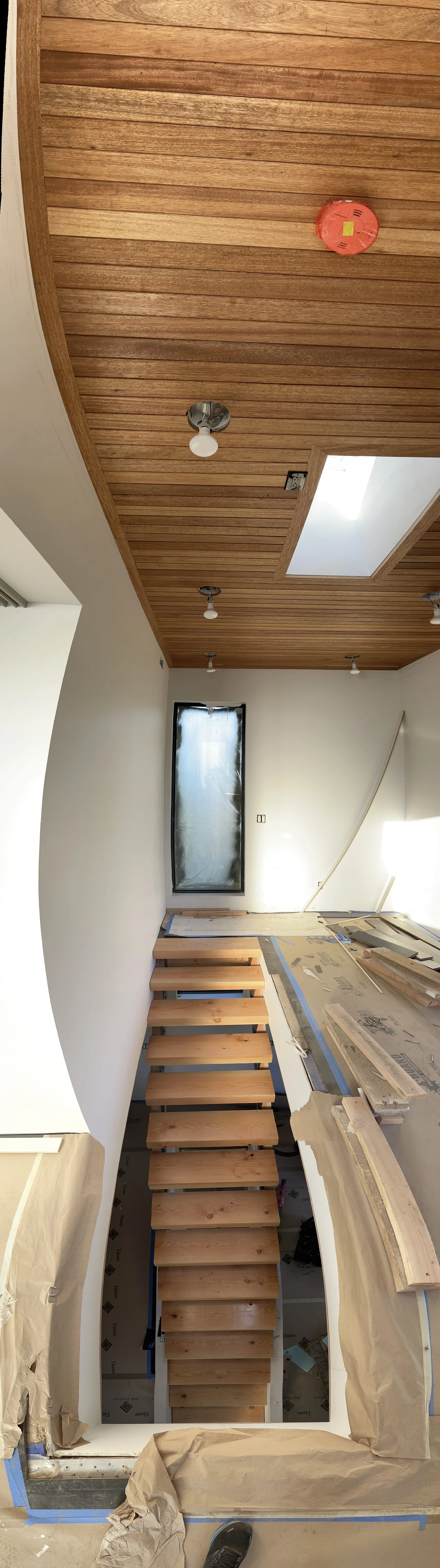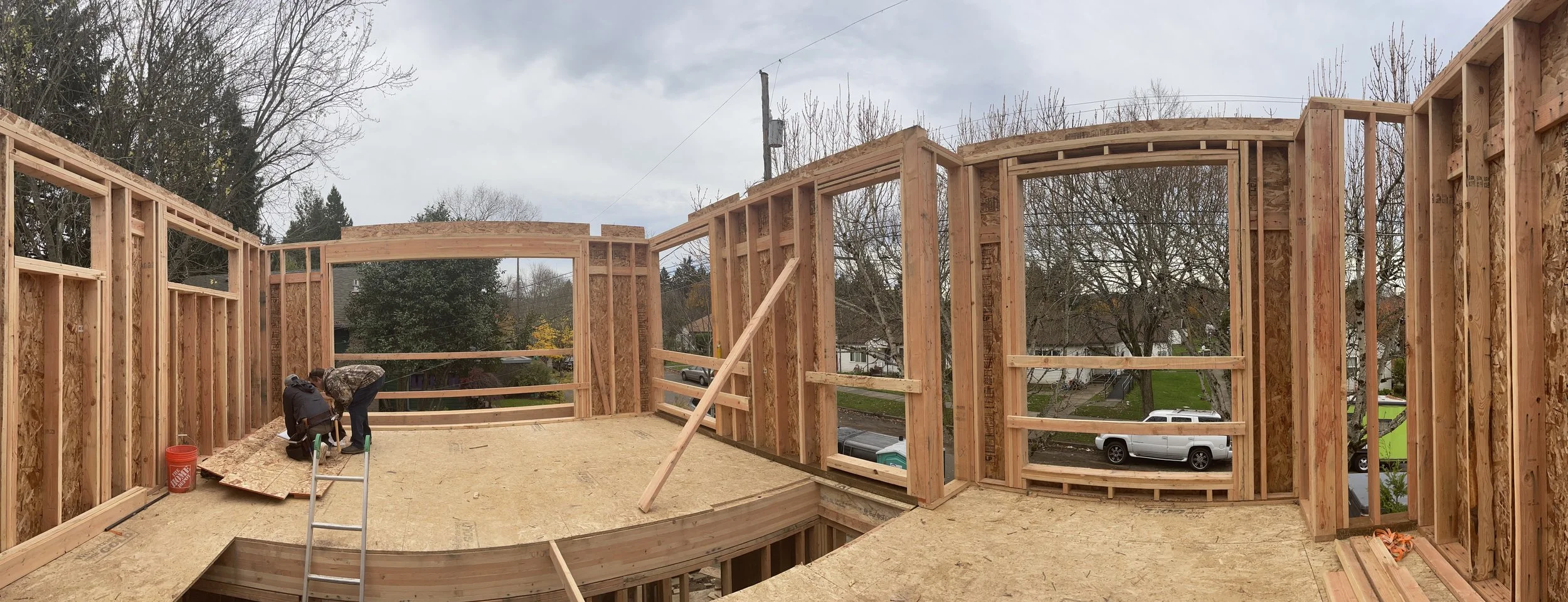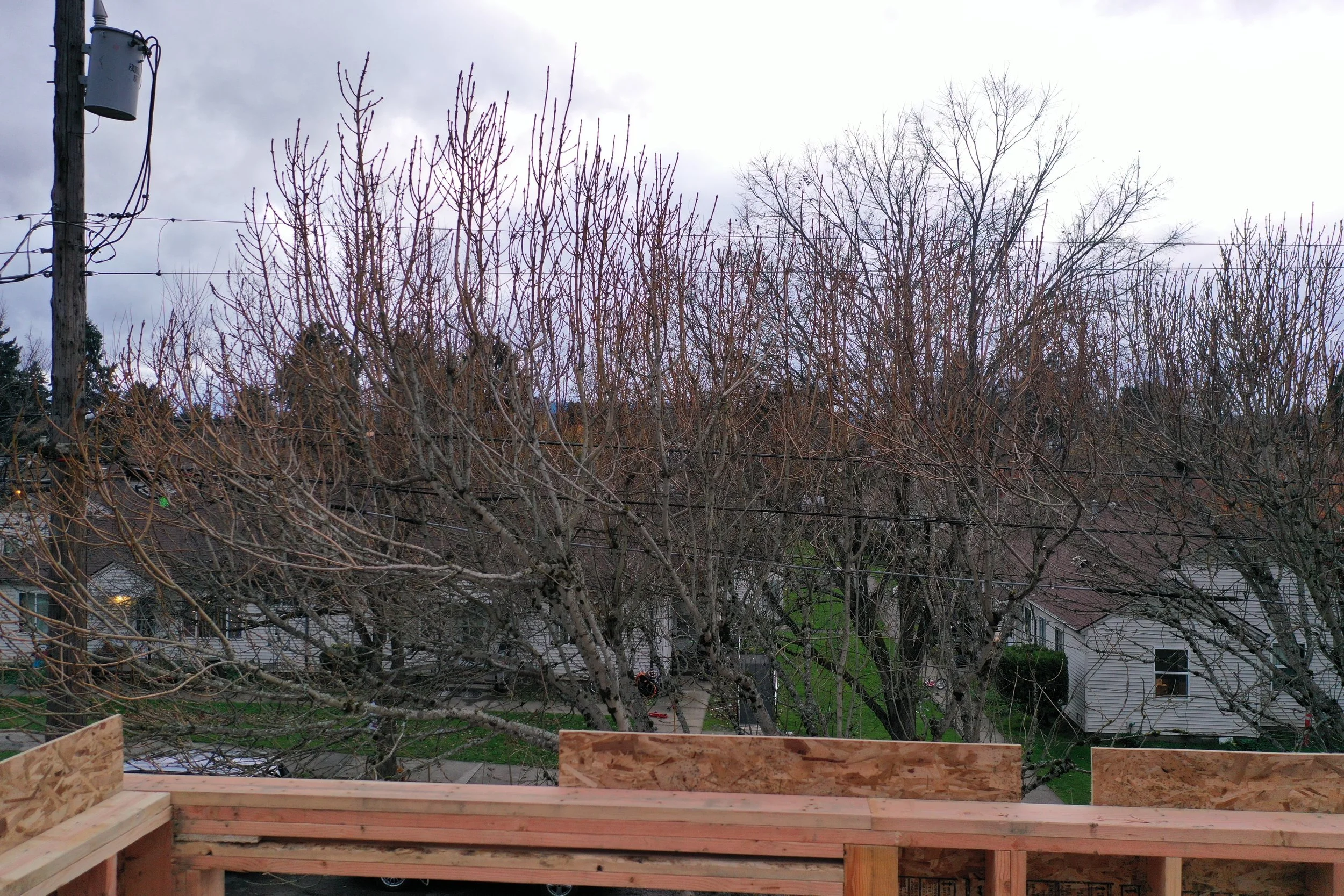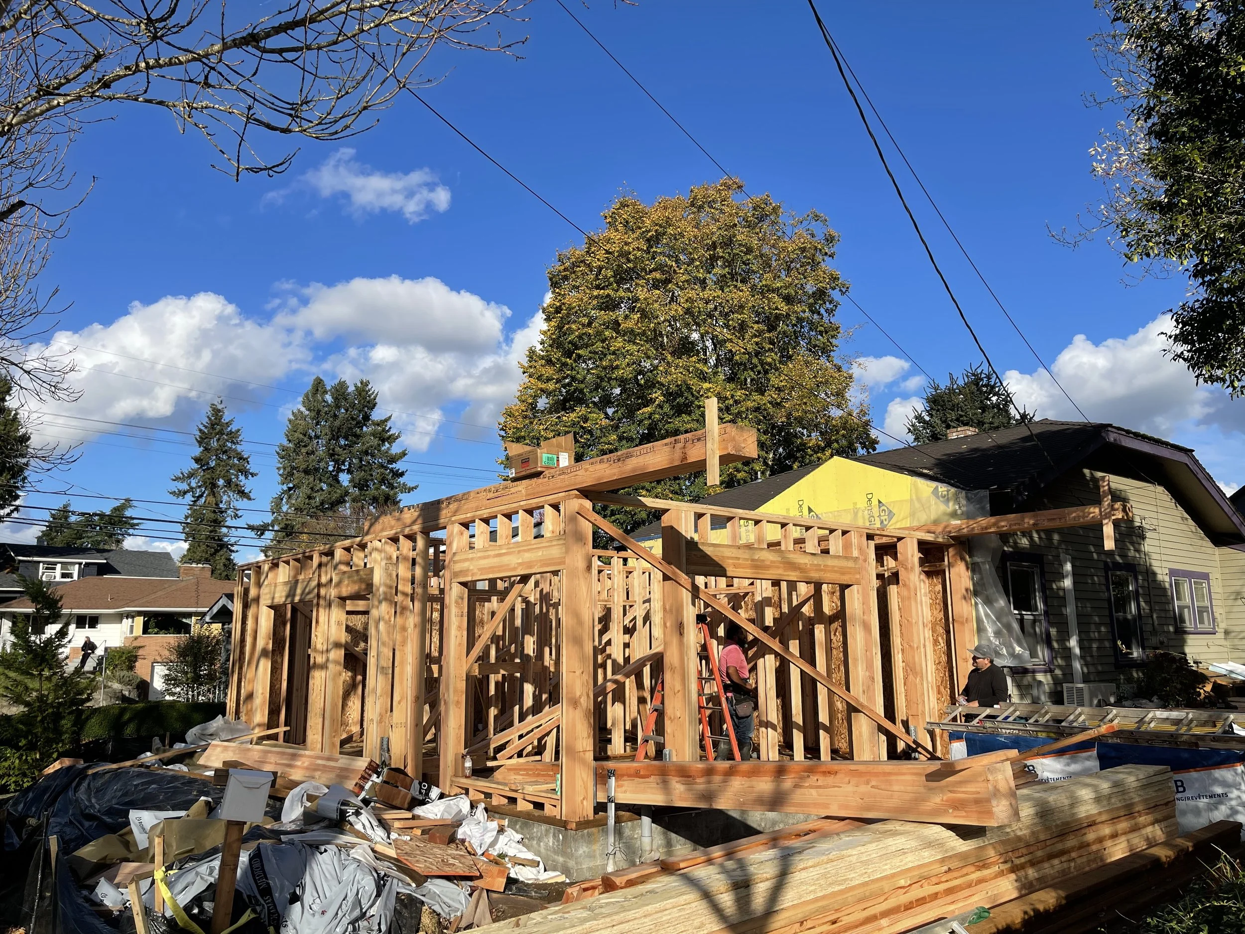 from the top. seeing the second level. third level and roof + roof deck to be framed this week.
