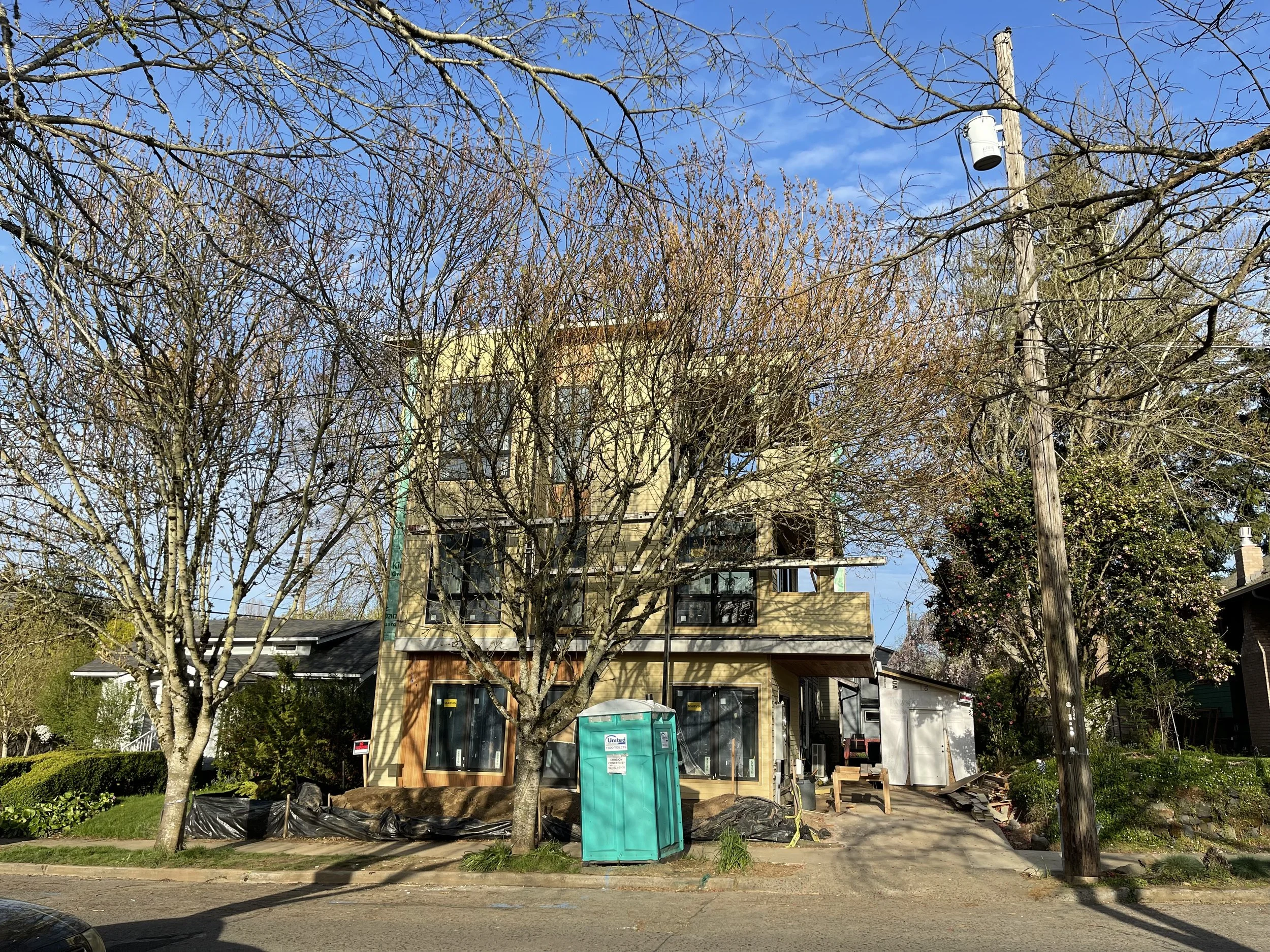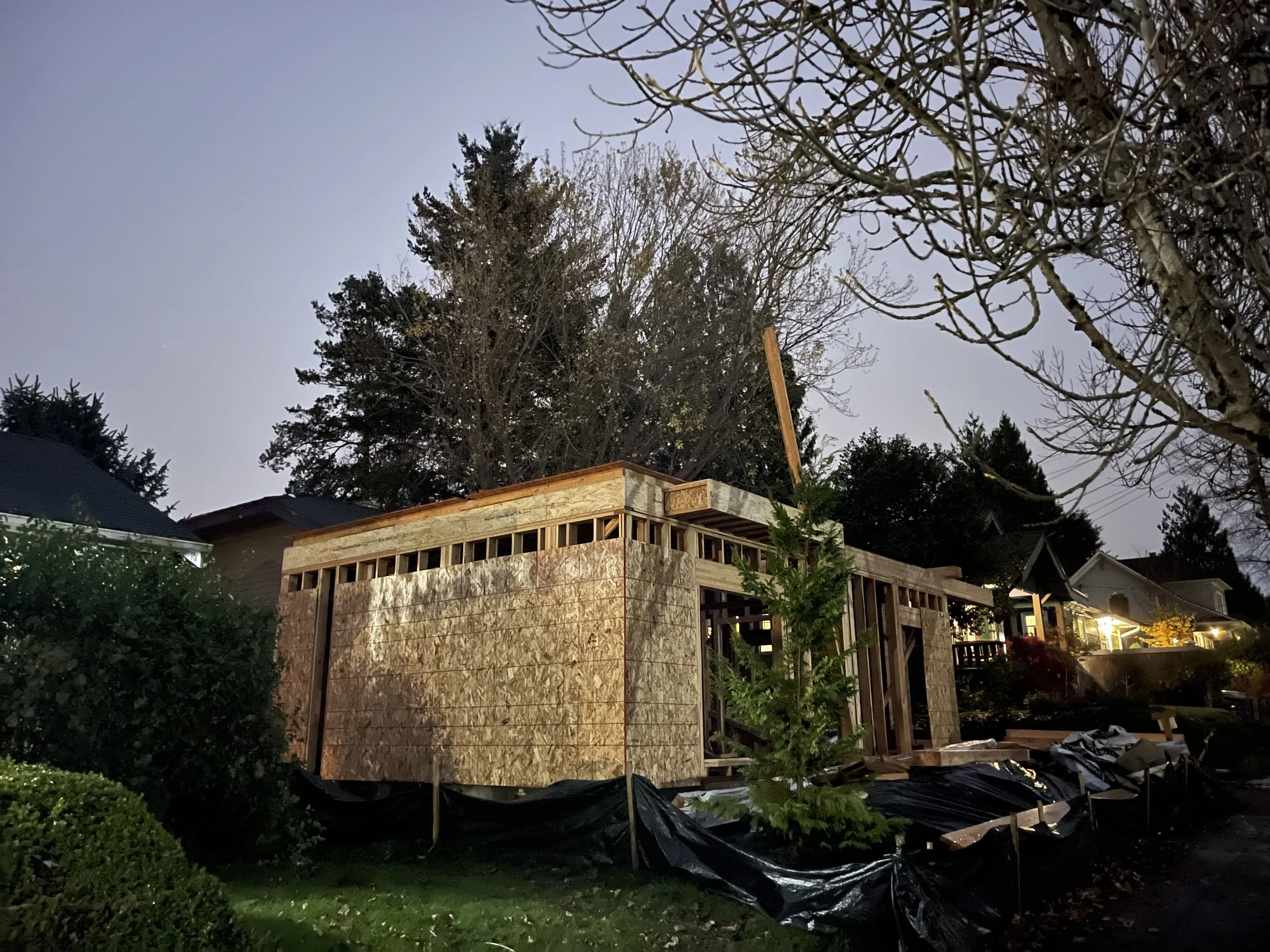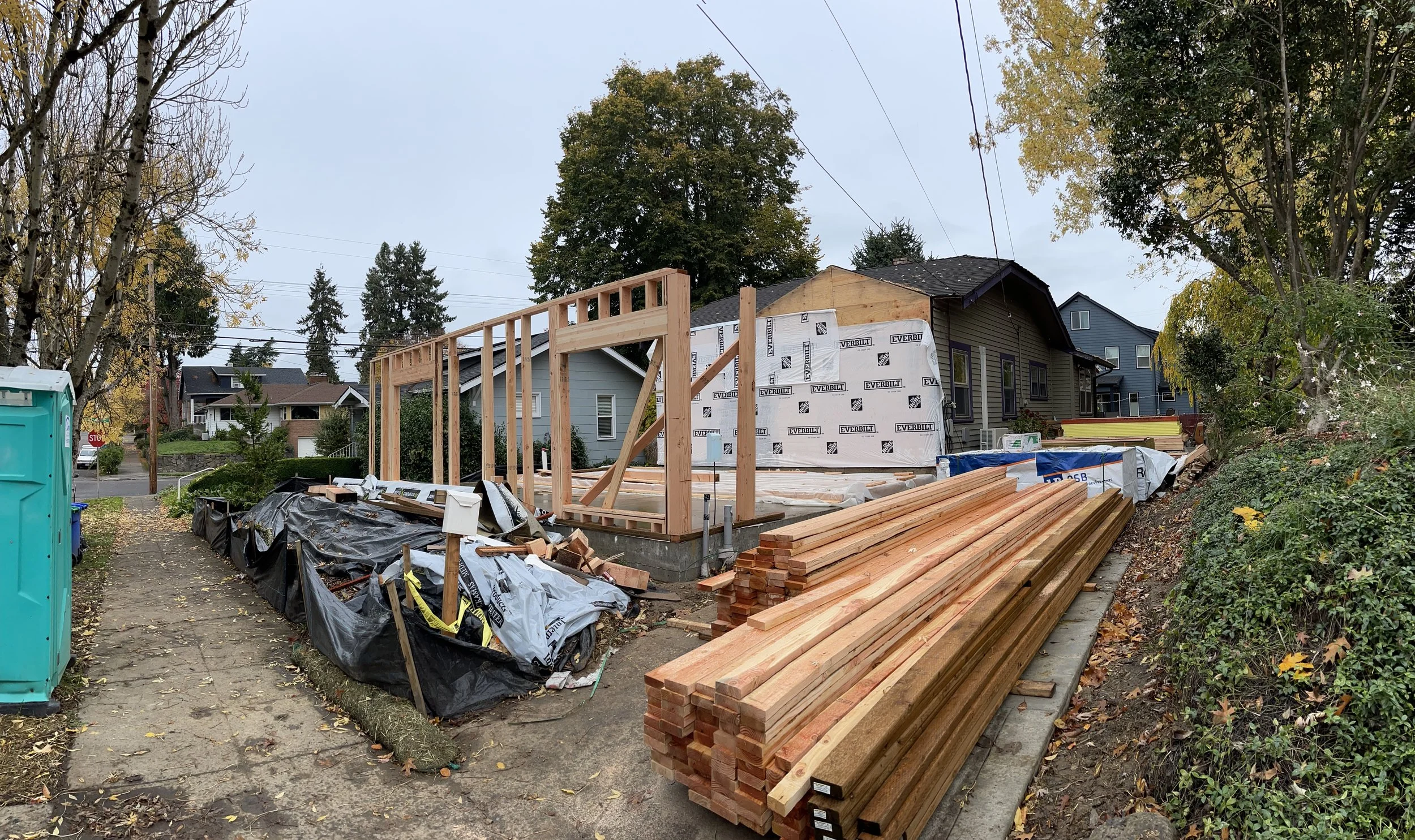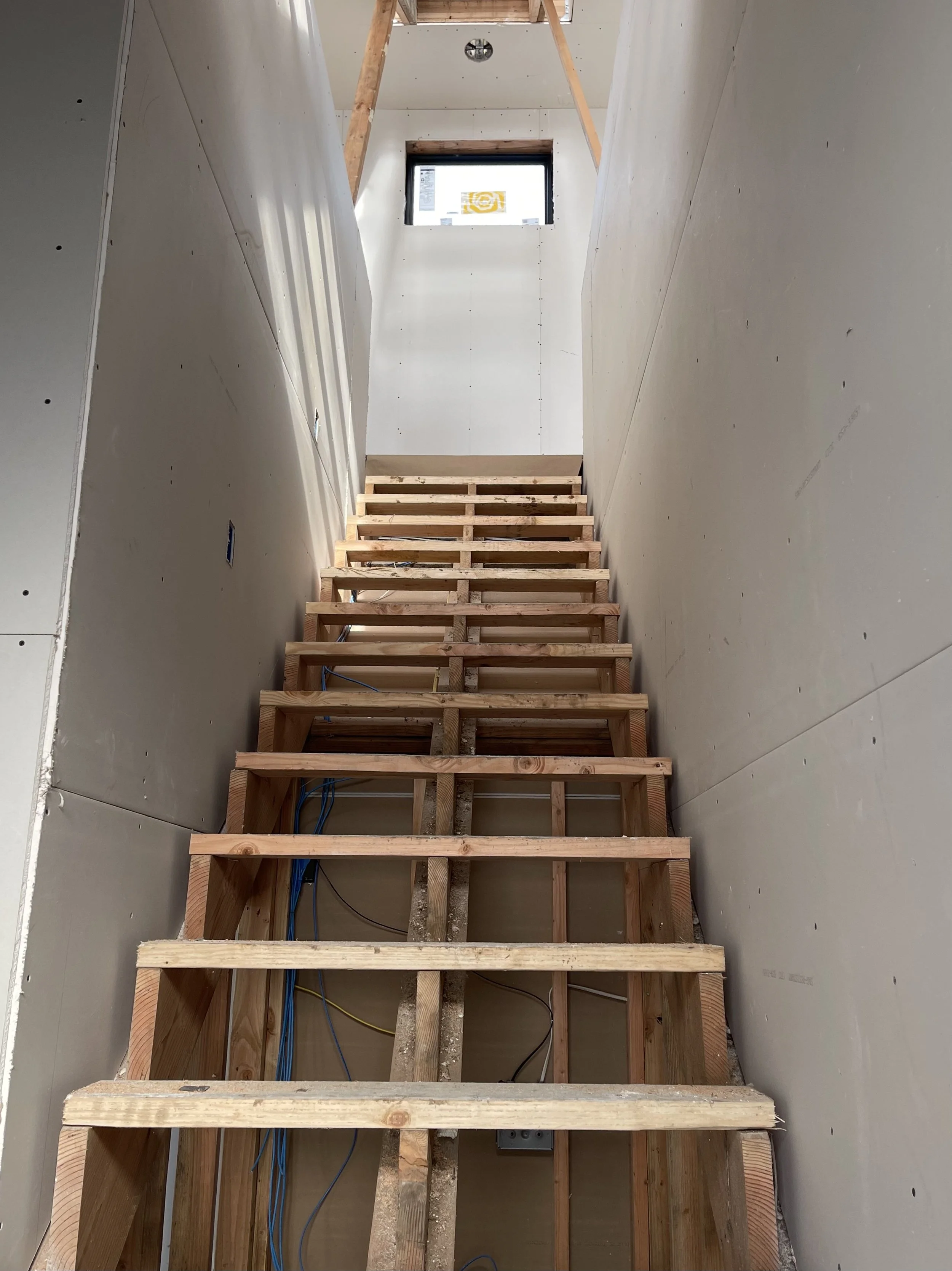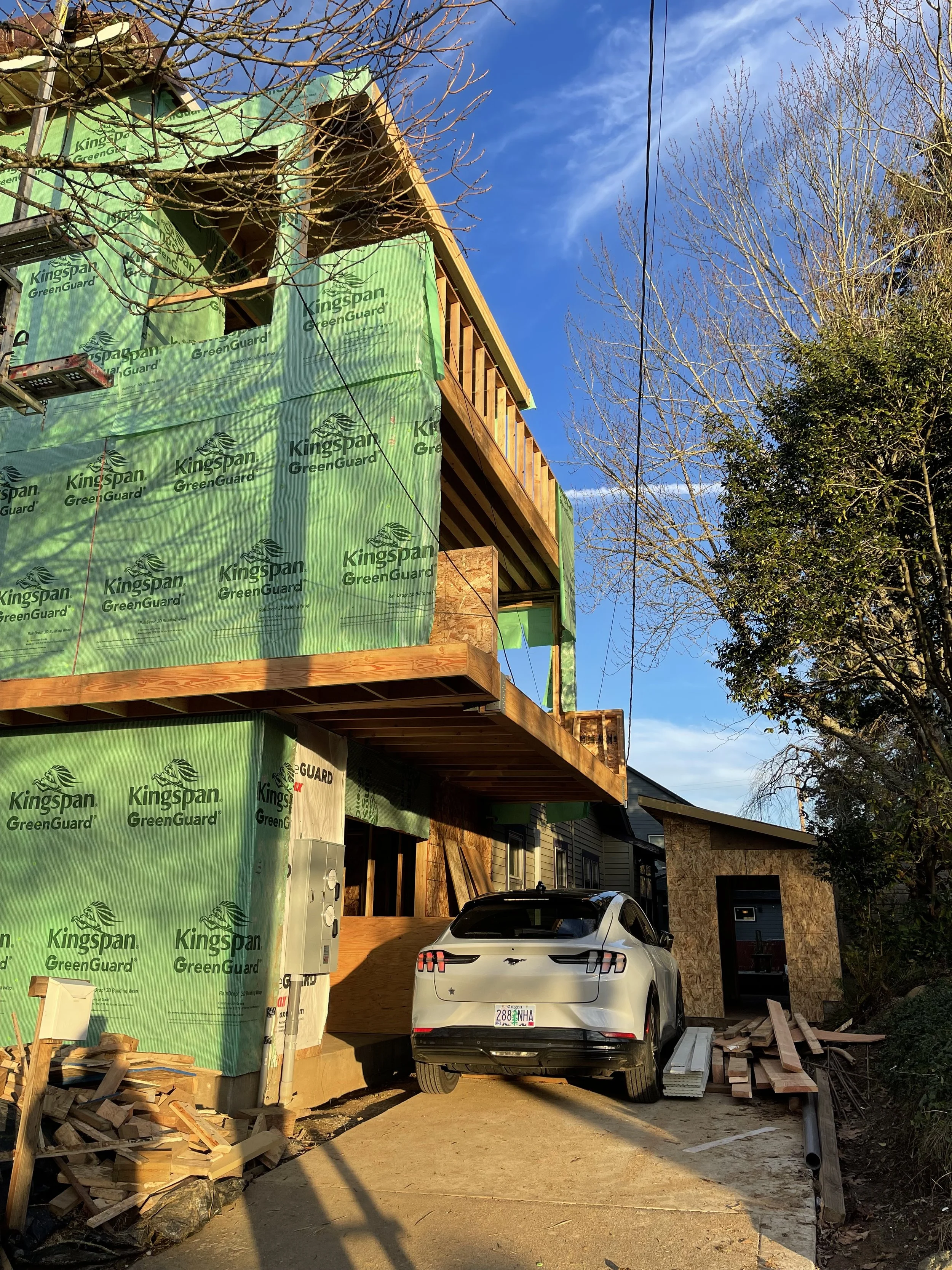 from the top. seeing the second level. third level and roof + roof deck to be framed this week.