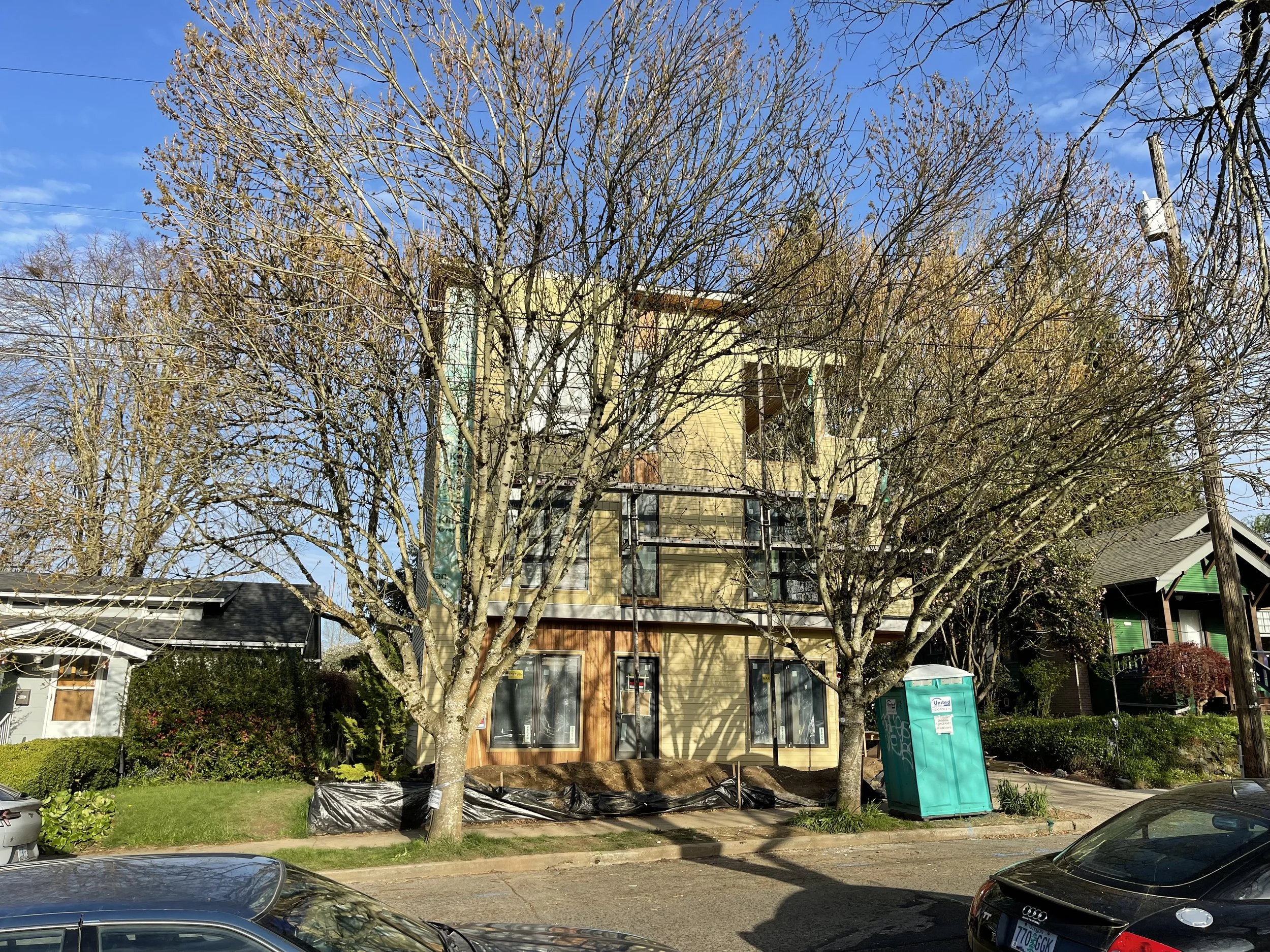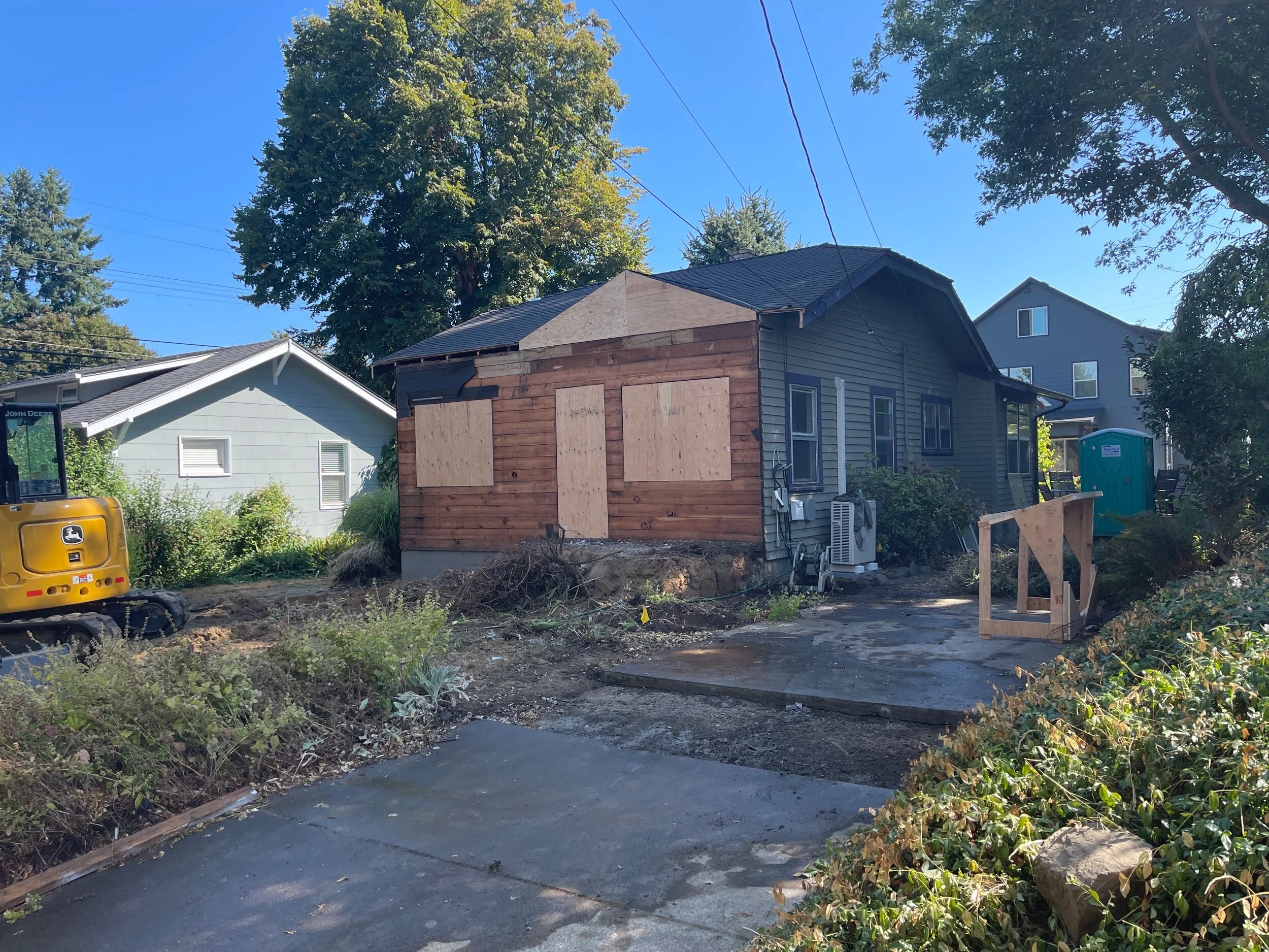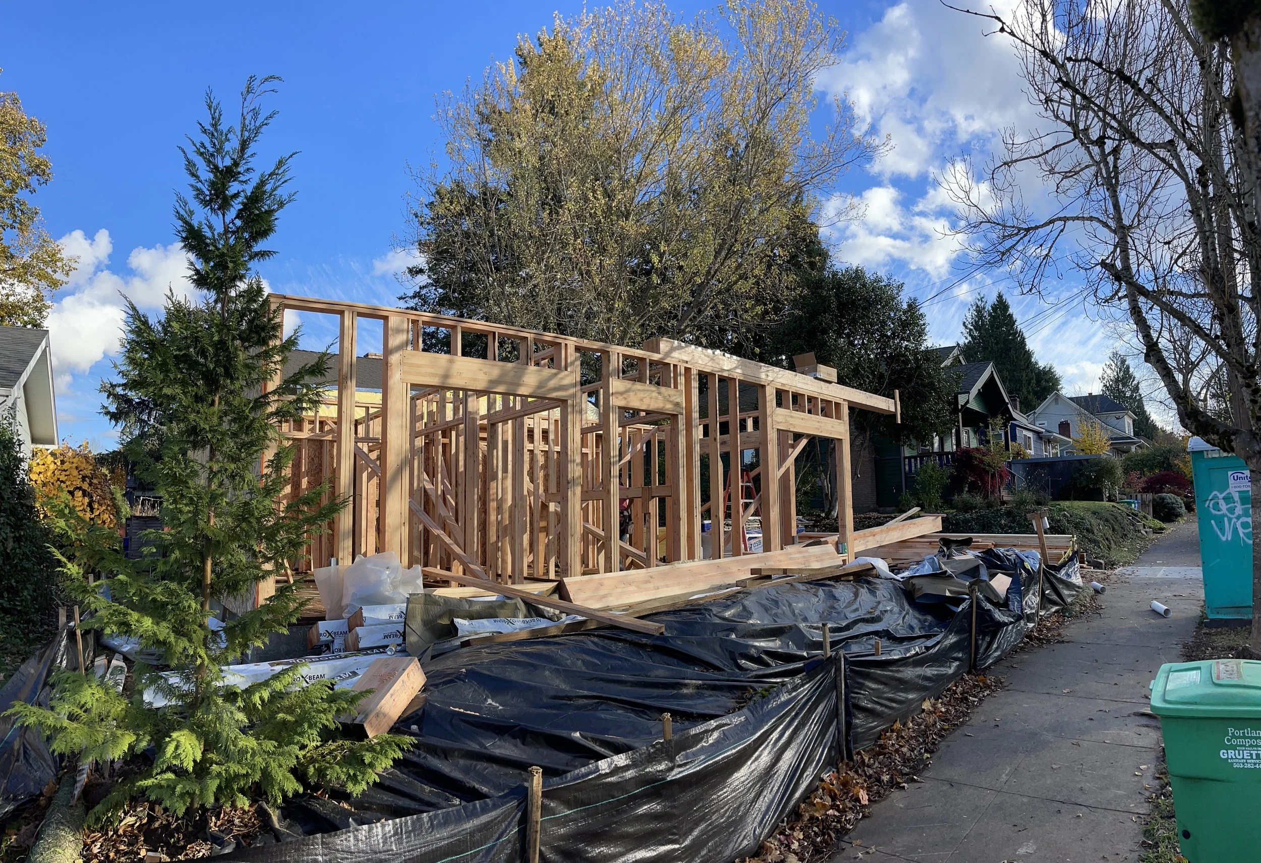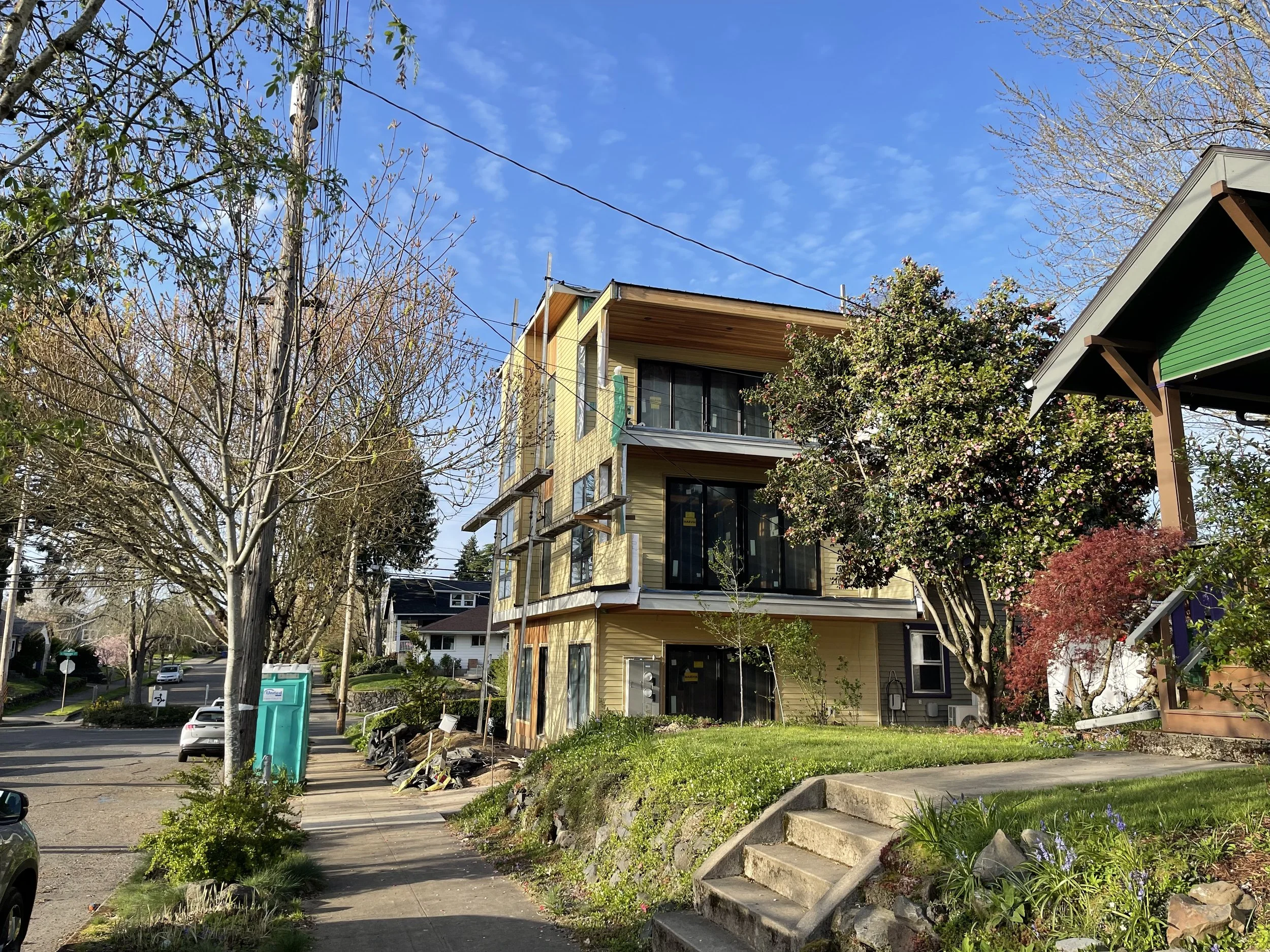 from the top. seeing the second level. third level and roof + roof deck to be framed this week.
