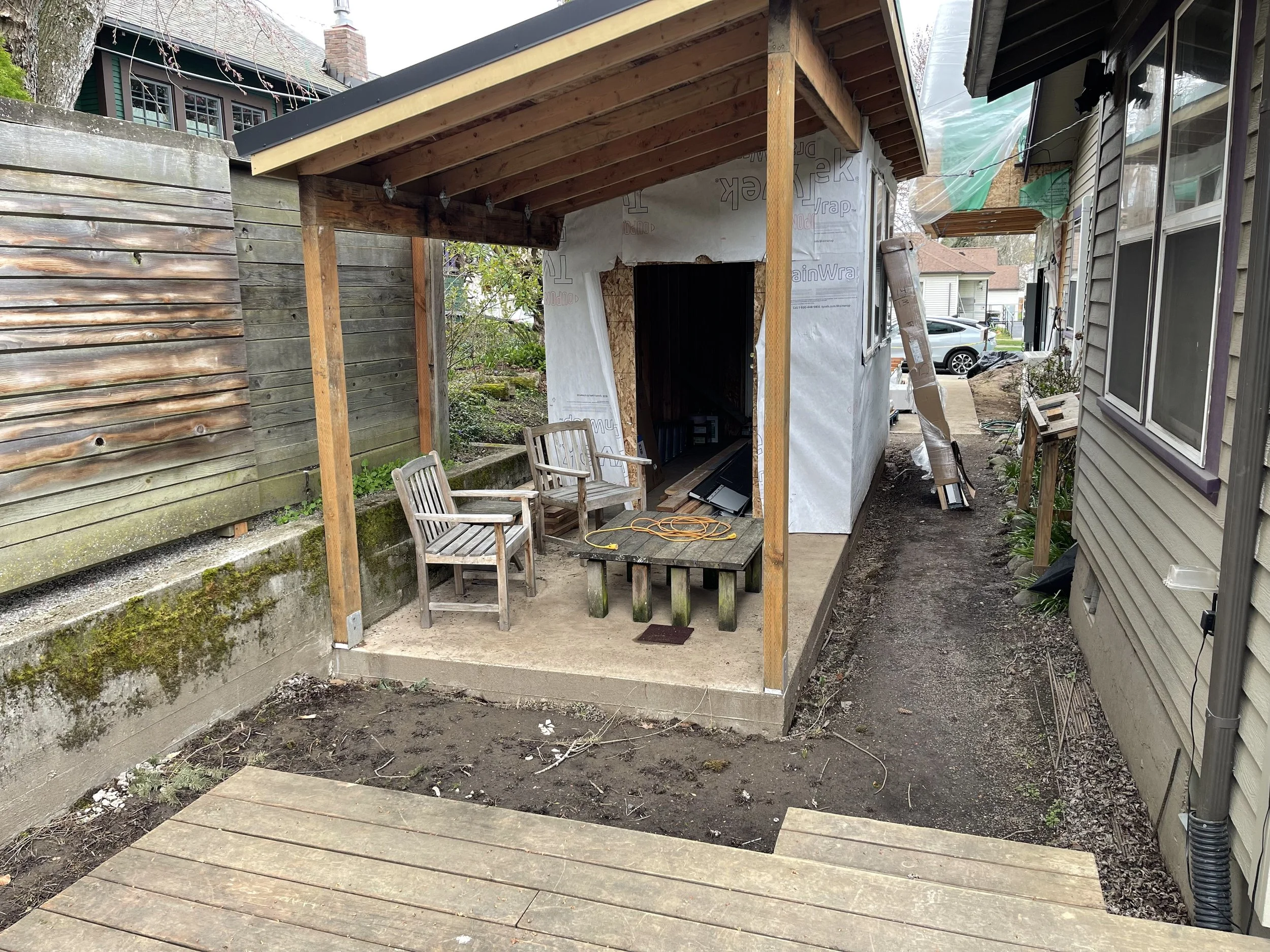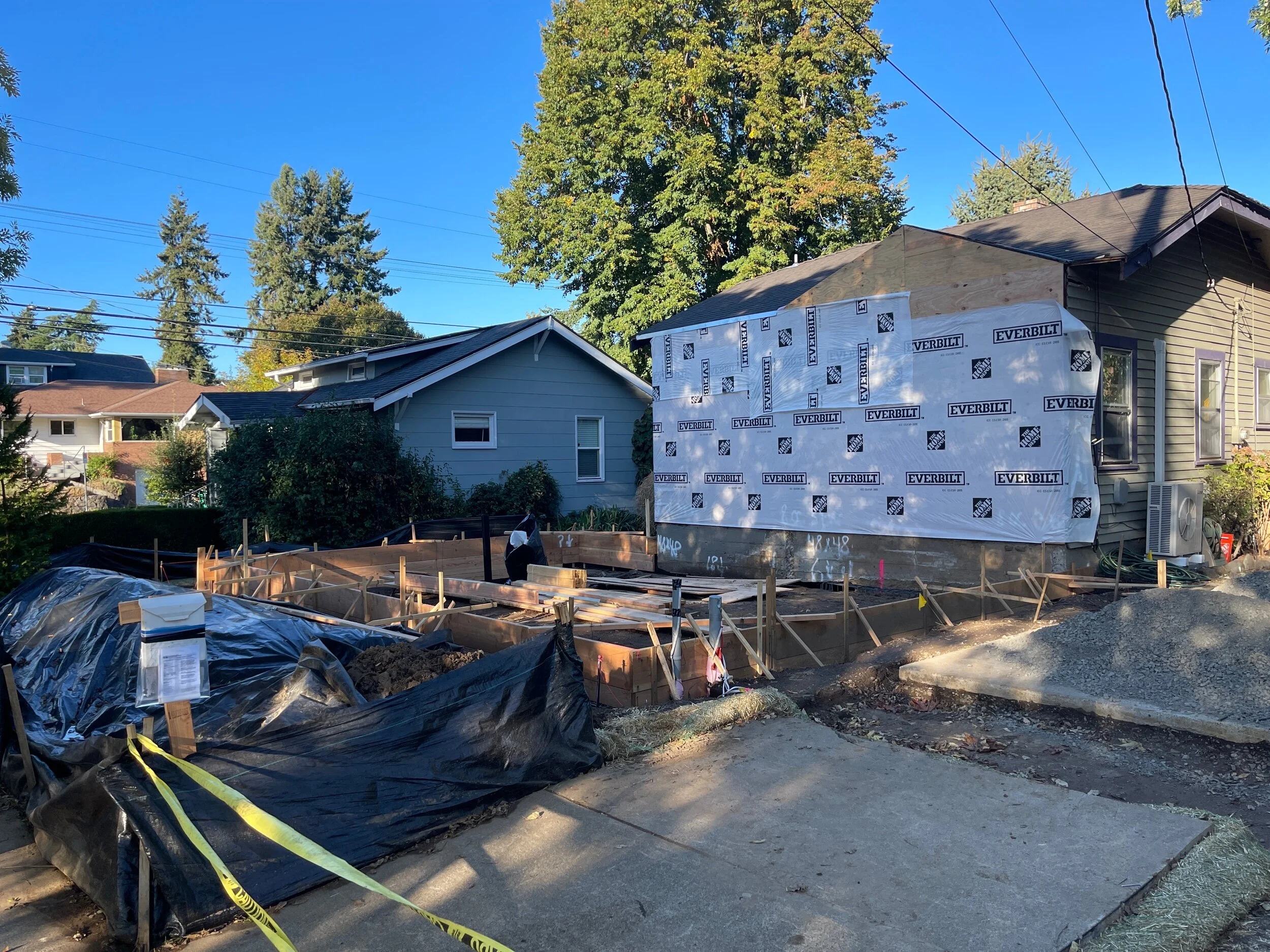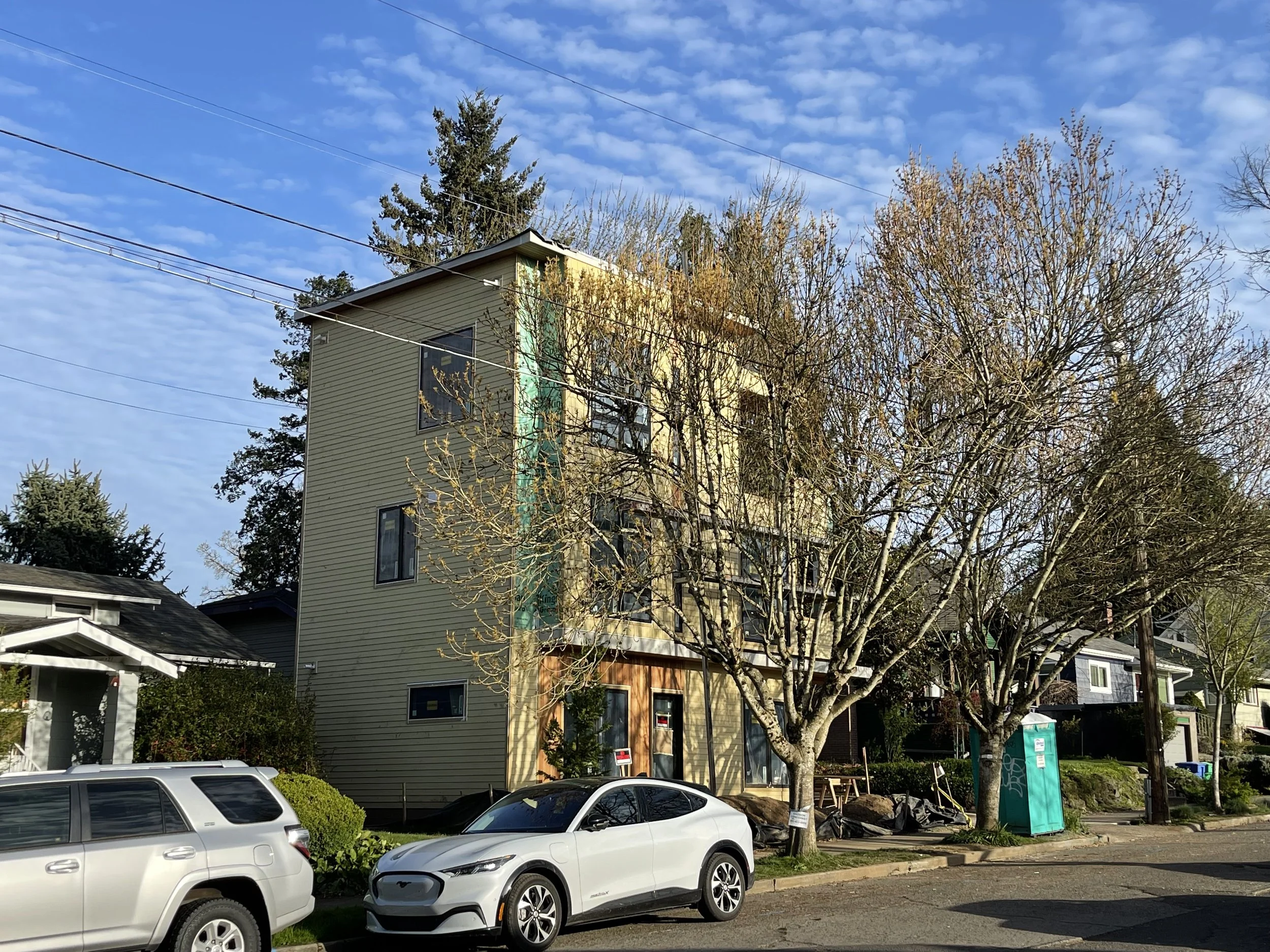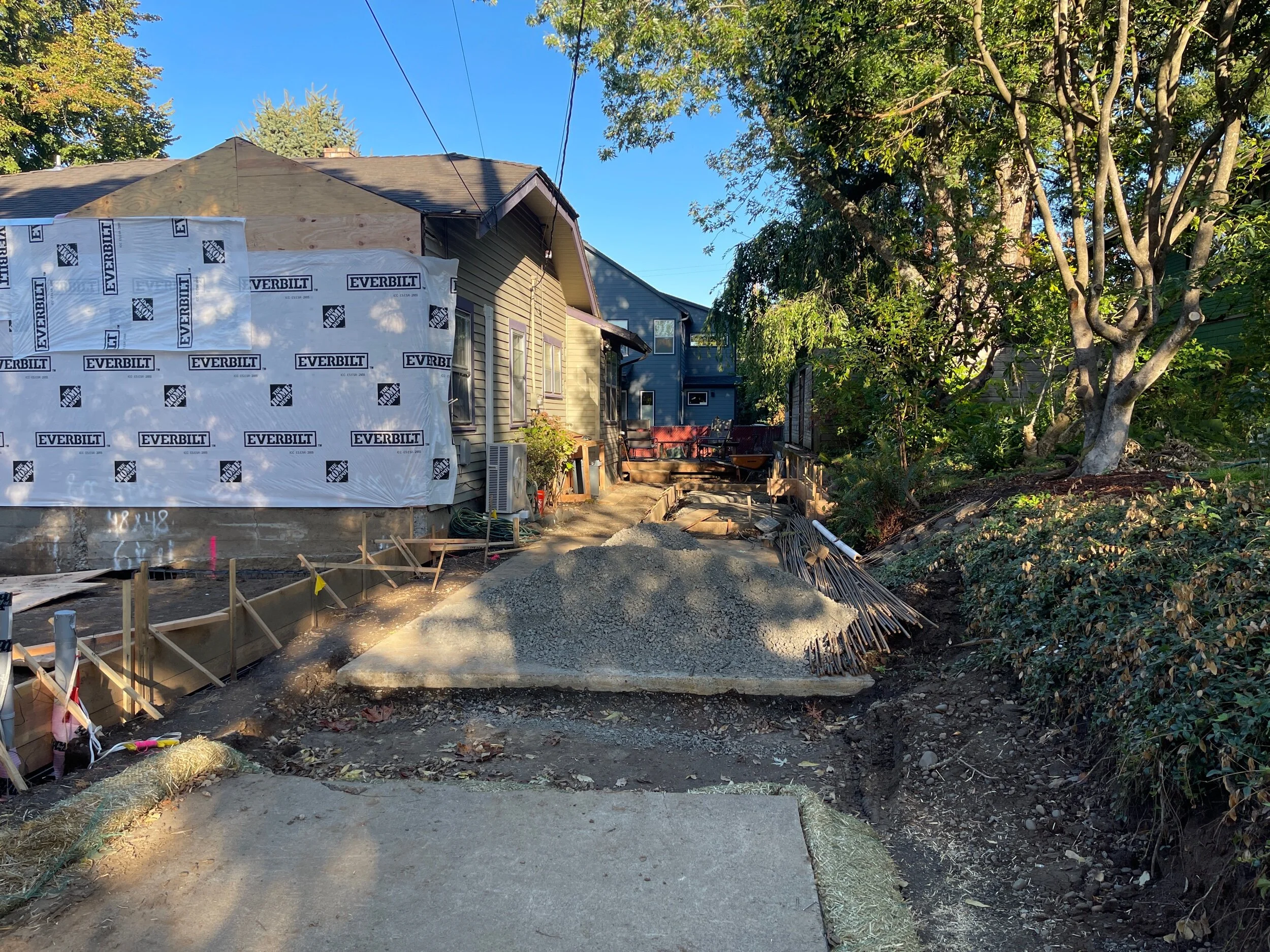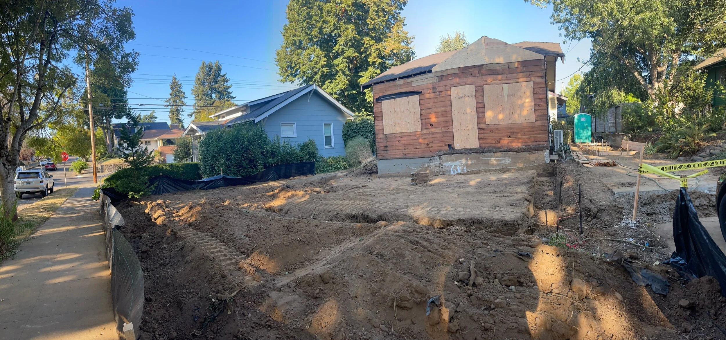 from the top. seeing the second level. third level and roof + roof deck to be framed this week.